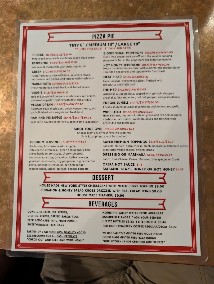 This 13-inch specialty pizza is based with a house made hot honey, mozzarella blend, shredded pepperoni, and topped with fresh basil