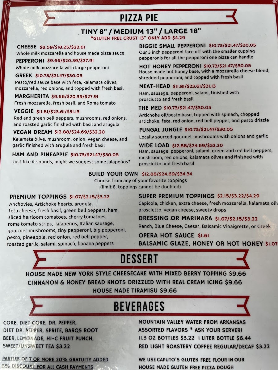 Choose from any of your favorite toppings, limit 8 and toppings cannot be doubled. Make your own way, but remember! It is but one crust!