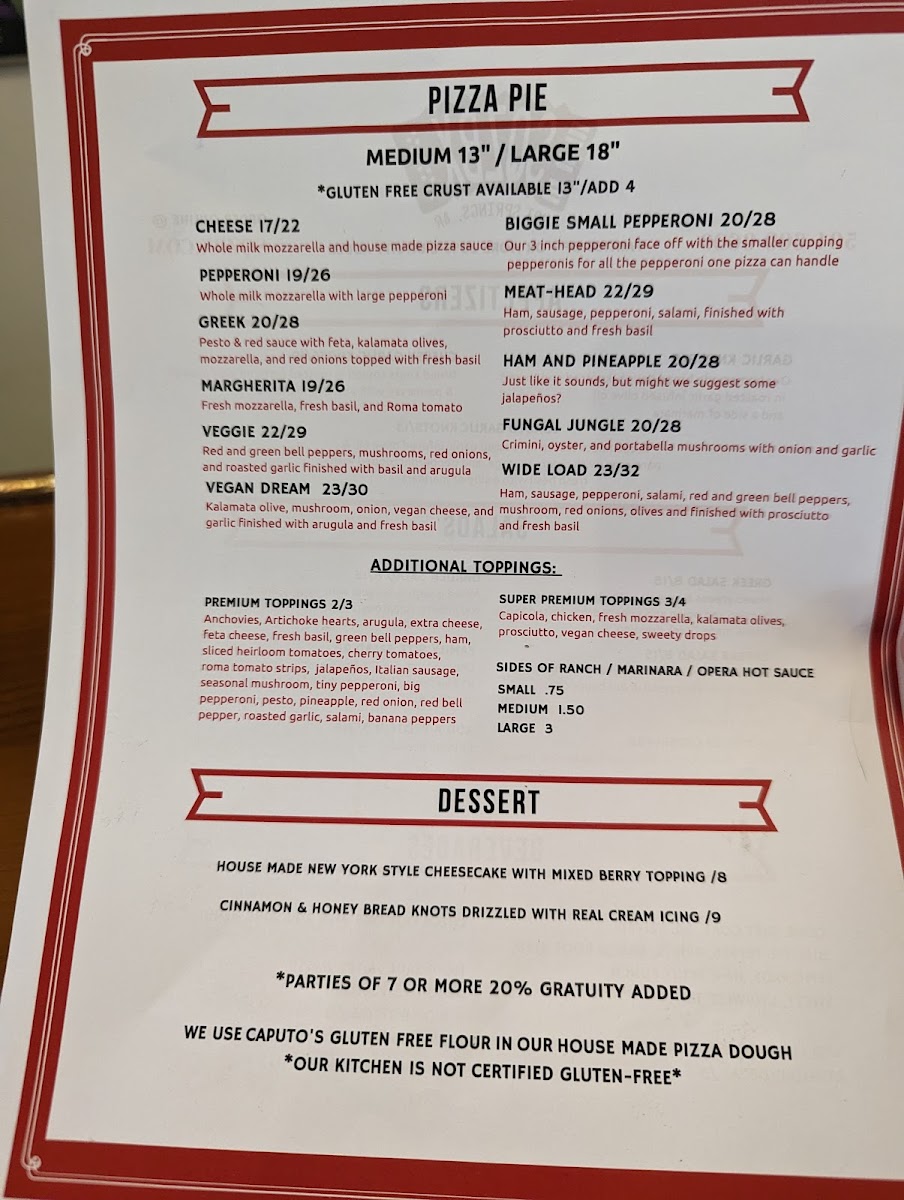 Kalamata olives, mushrooms, red onion, vegan cheese, roasted garlic, topped with fresh basil and arugula on a 18 inch pizza